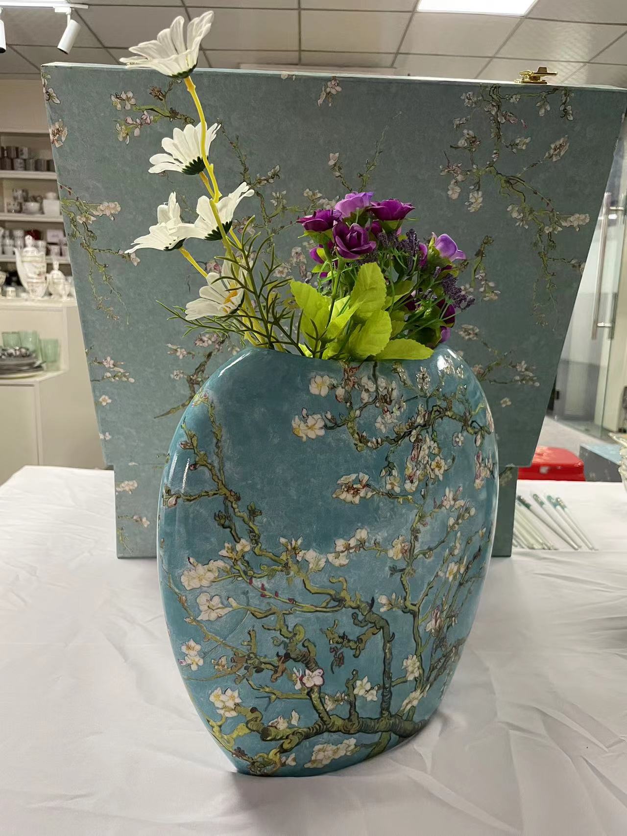 - SMF Top Brand Boutique Ceramic Art Essence Vase for Collection or Household Decoration by Fine Bone Chinaware by Van Gogh Painting Apricot Blossom Floral Embossed Gold Decoration for Hotel Lobby Display and Artists Collection